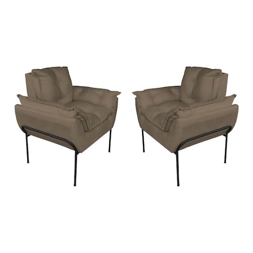 Kit 2 Poltronas Luxo Suede Cappucino Base de Ferro Preta - Vallisa Decor - Preto