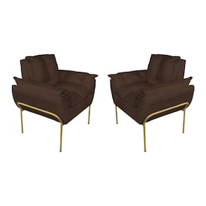 Kit 2 Poltronas Luxo Suede Marrom Base de Ferro Dourada - Vallisa Decor