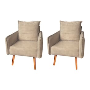 Kit 2 Poltronas Mandara Vintage Pés Palilto Linho Bege