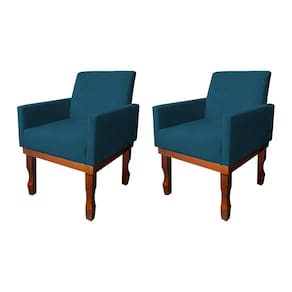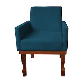 Kit 2 Poltronas Medusa Retrô Pés de Madeira Maciça Suede Azul Marinho - Azul Turquesa
