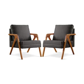Kit 2 Poltronas Mona Braço de Madeira Decorativa Preto