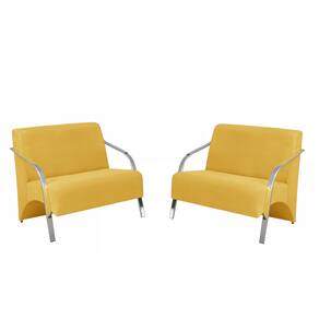 Kit 2 Poltronas Namoradeira 2 Lugares Vênus Braço Alumínio D Salla Suede - Amarelo