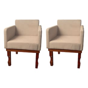 Kit 2 Poltronas Nina Retrô Pés de Madeira Maciça Linho Bege