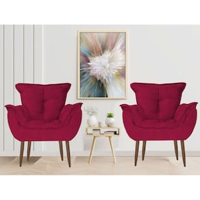 Kit 2 Poltronas Opala Decorativa Sala Quarto Escritorio Vermelho
