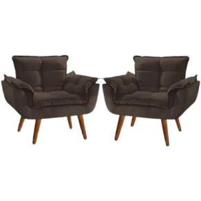 Kit 2 Poltronas Opalla Decorativa Reforçada Recepção Sala De Estar Suede - Marrom