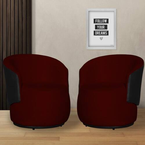 Kit 2 Poltronas Organica Beatriz Suede Bordo C/ Composê Corano Preto - LM DECOR