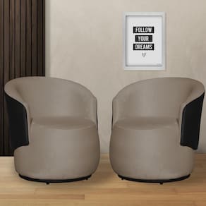 Kit 2 Poltronas Organica Beatriz Suede Cappuccino C/ Composê Corano Preto - LM DECOR