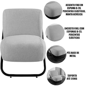 - Encosto fixo em espuma D-23 com percintas elásticas;