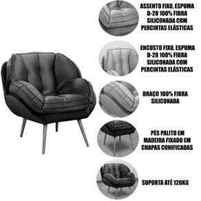 - Encosto fixo em espuma D-28 100% fibra siliconada com percintas elásticas;