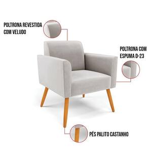Todo mundo gosta de um ambiente bem decorado, e se for novidade melhor ainda não é mesmo? A D'Rossi, além de entregar beleza, qualidade e confiança aos clientes, ela dispõe das melhores opções em produtos, disponíveis no mercado! Se você quer um produto sofisticado, opte pela Poltrona Marisa. Ela dispõe de um tom lindo no Cinza, uma cor leve, neutra e delicada que combina com qualquer estilo de decoração. Esta mobília fica perfeita na sala, escritório, quarto, varanda coberta e onde mais preferir! Sua estrutura é feita em madeira reforçada de eucalipto proveniente de reflorestamento. No assento/encosto contém um revestimento no tecido Veludo, com estofamento em espuma prorelax D-23, garantindo maior conforto ao usuário. A sustentação da peça é dada pelos Pés Palito Castanho, garantindo uma resistência melhor, para relaxar o dia todo com mais comodidade. A Poltrona Marisa é ideal, para dar aquele realce que seu ambiente precisa. Tenho certeza que, esse móvel é a melhor compra que você irá fazer. Garanta já seu Kit 2 Poltronas e se acomode da melhor maneira possível!