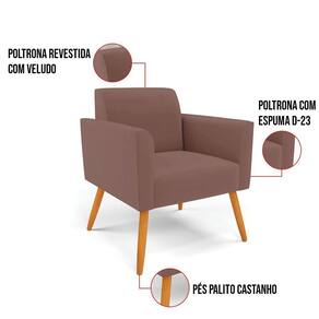 Todo mundo gosta de um ambiente bem decorado, e se for novidade melhor ainda não é mesmo? A D'Rossi, além de entregar beleza, qualidade e confiança aos clientes, ela dispõe das melhores opções em produtos, disponíveis no mercado! Se você quer um produto sofisticado, opte pela Poltrona Marisa. Ela dispõe de um tom lindo no Rosê, uma cor leve, neutra e delicada que combina com qualquer estilo de decoração. Esta mobília fica perfeita na sala, escritório, quarto, varanda coberta e onde mais preferir! Sua estrutura é feita em madeira reforçada de eucalipto proveniente de reflorestamento. No assento/encosto contém um revestimento no tecido Veludo, com estofamento em espuma prorelax D-23, garantindo maior conforto ao usuário. A sustentação da peça é dada pelos Pés Palito Castanho, garantindo uma resistência melhor, para relaxar o dia todo com mais comodidade. A Poltrona Marisa é ideal, para dar aquele realce que seu ambiente precisa. Tenho certeza que, esse móvel é a melhor compra que você irá fazer. Garanta já seu Kit 2 Poltronas e se acomode da melhor maneira possível!