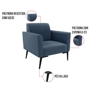 Todo mundo gosta de um ambiente bem decorado, e se for novidade melhor ainda não é mesmo? A D'Rossi, além de entregar beleza, qualidade e confiança aos clientes, ela dispõe das melhores opções em produtos, disponíveis no mercado! Se você quer um produto sofisticado, opte pelo Kit 2 Poltronas Marisa. Ela dispõe de um tom lindo no Azul Marinho, uma cor leve, neutra e delicada que combina com qualquer estilo de decoração. Esta mobília fica perfeita na sala, escritório, quarto, varanda coberta e onde mais preferir! Sua estrutura é feita em madeira reforçada de eucalipto proveniente de reflorestamento. No assento/encosto contém um revestimento no tecido Suede, com estofamento em espuma prorelax D-23, garantindo maior conforto ao usuário. A sustentação da peça é dada pelos Pés Villach, garantindo uma resistência melhor, para relaxar o dia todo com mais comodidade. A Poltrona Marisa é ideal, para dar aquele realce que seu ambiente precisa. Tenho certeza que, esse móvel é a melhor compra que você irá fazer. Garanta já seu Kit 2 Poltronas e se acomode da melhor maneira possível!