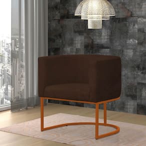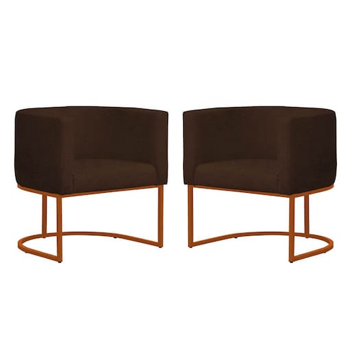 Kit 2 Poltronas Reforçada Decorativa Sala Gabriela Base Ferro Bronze Suede - Marrom