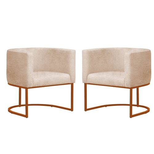 Kit 2 Poltronas Reforçada Decorativa Sala Gabriela Base Ferro Bronze Suede - Bege
