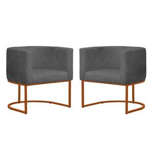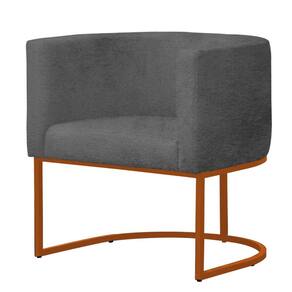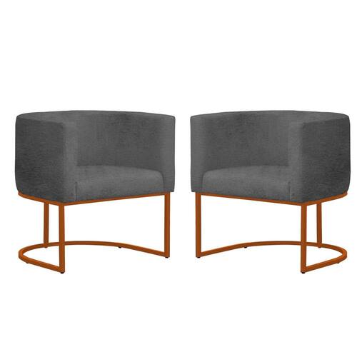 Kit 2 Poltronas Reforçada Decorativa Sala Gabriela Base Ferro Bronze Suede - Cinza