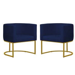 Kit 2 Poltronas Reforçada Decorativa Sala Gabriela Base Ferro Dourada Suede Azul Marinho