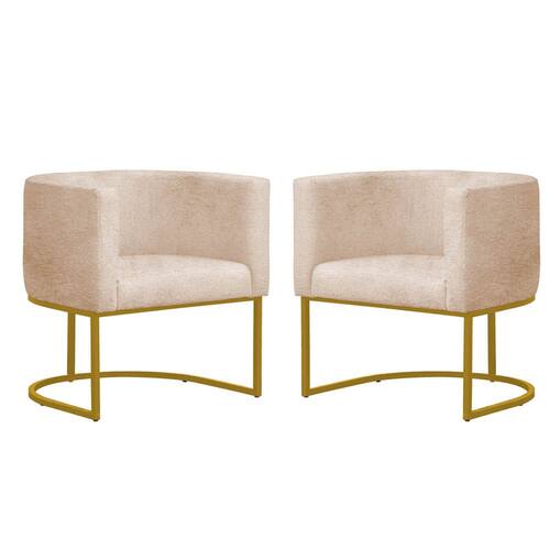 Kit 2 Poltronas Reforçada Decorativa Sala Gabriela Base Ferro Dourada Suede - Bege