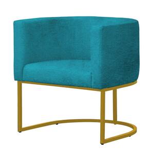 Kit 2 Poltronas Reforçada Decorativa Sala Gabriela Base Ferro Dourada Suede - Azul