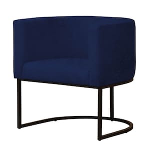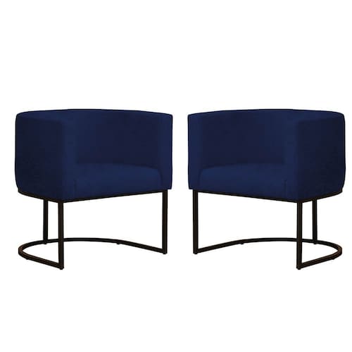 Kit 2 Poltronas Reforçada Decorativa Sala Gabriela Base Ferro Preta Suede Azul Marinho
