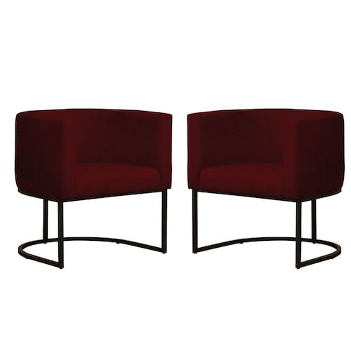 Kit 2 Poltronas Reforçada Decorativa Sala Gabriela Base Ferro Preta Suede - Marsala