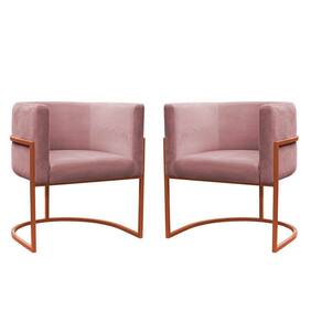 Kit 2 Poltronas Reforçadas Decorativa Sala Carla Base Ferro Bronze Suede Rose