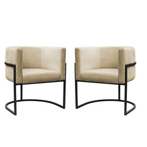 Kit 2 Poltronas Reforçadas Decorativa Sala Carla Base Ferro Preta Suede - Bege