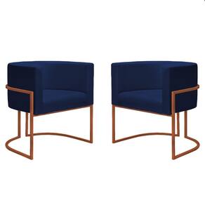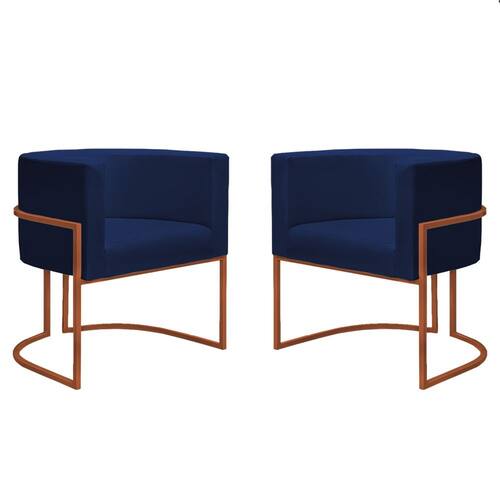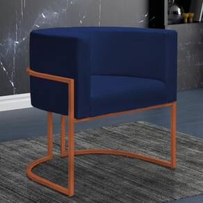 Kit 2 Poltronas Reforçadas Decorativa Sala Nayara Base Ferro Bronze Suede Azul Marinho