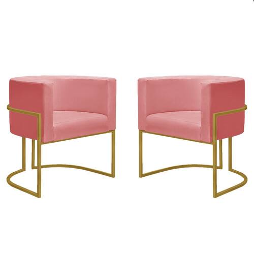 Kit 2 Poltronas Reforçadas Decorativa Sala Nayara Base Ferro Dourado Suede Capuccino - Rosê