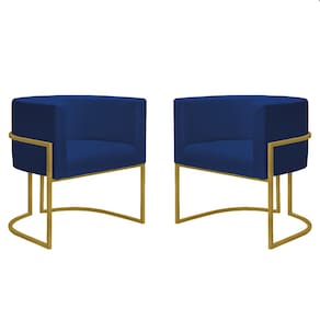 Kit 2 Poltronas Reforçadas Decorativa Sala Nayara Base Ferro Dourado Suede - Azul Marinho