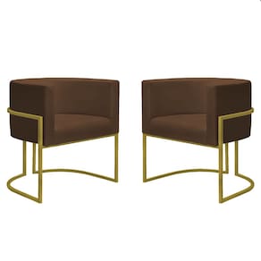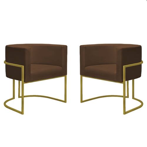 Kit 2 Poltronas Reforçadas Decorativa Sala Nayara Base Ferro Dourado Suede - Marrom