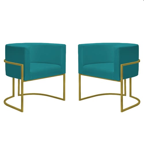 Kit 2 Poltronas Reforçadas Decorativa Sala Nayara Base Ferro Dourado Suede - Azul