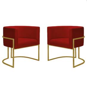 Kit 2 Poltronas Reforçadas Decorativa Sala Nayara Base Ferro Dourado Suede - Marsala