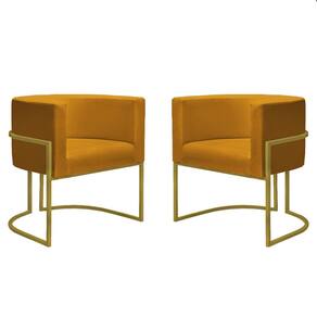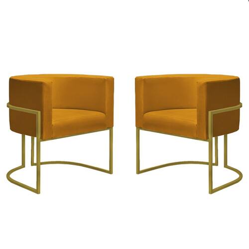 Kit 2 Poltronas Reforçadas Decorativa Sala Nayara Base Ferro Dourado Suede - Mostarda