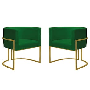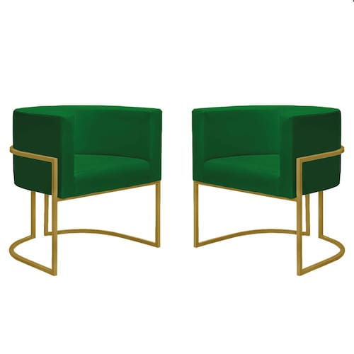 Kit 2 Poltronas Reforçadas Decorativa Sala Nayara Base Ferro Dourado Suede - Verde