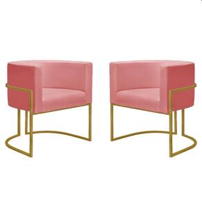 Kit 2 Poltronas Reforçadas Decorativa Sala Nayara Base Ferro Dourado Suede - Rosê