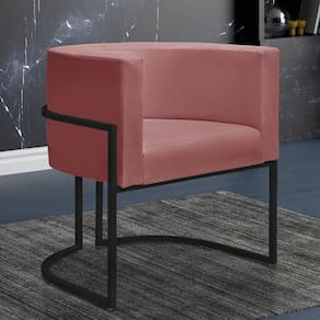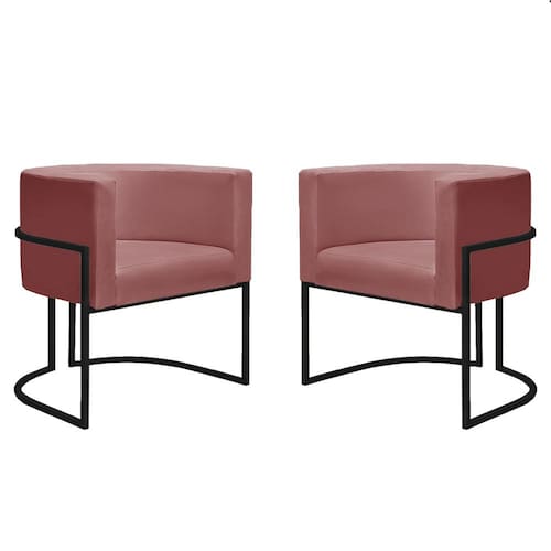 Kit 2 Poltronas Reforçadas Decorativa Sala Nayara Base Ferro Preto Suede Rose