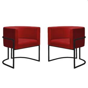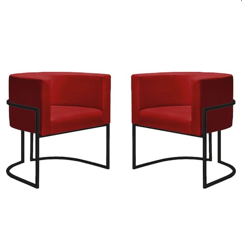 Kit 2 Poltronas Reforçadas Decorativa Sala Nayara Base Ferro Preto Suede - Vermelho