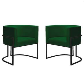 Kit 2 Poltronas Reforçadas Decorativa Sala Nayara Base Ferro Preto Suede - Verde