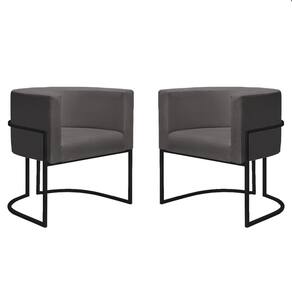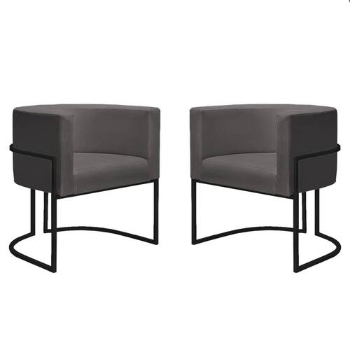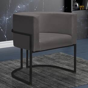 Kit 2 Poltronas Reforçadas Decorativa Sala Nayara Base Ferro Preto Suede - Cinza