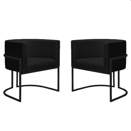 Kit 2 Poltronas Reforçadas Decorativa Sala Nayara Base Ferro Preto Suede
