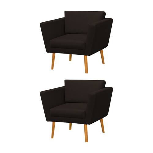 Kit 2 Poltronas Retrô Pés Palito em Madeira Paraty Linho Marrom Escuro
