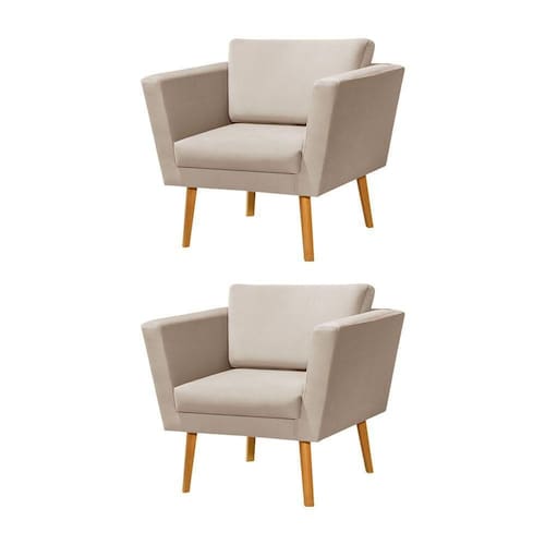Kit 2 Poltronas Retrô Pés Palito Em Madeira Paraty Veludo Bege - Cor: Bege Conheça a Poltrona Decorativa Paraty, uma peça que une conforto e elegância para o seu ambiente. Com assento de espuma D26 e encosto com almofada solta em espuma hiper soft D20, essa poltrona é ideal para momentos de descanso e relaxamento.CaracterísticasTipo: Poltrona Modelo: Paraty Tecido: Veludo Cor: Bege DIMENSÕES DO PRODUTOAltura: 81cmLargura: 70cmComprimento: 85cmInformações adicionais:- Materiais da estrutura: Madeira ecológica, MDF- Material dos pés: Madeira Maciça ecológica - Cor da madeira: l - Requer montagem: Sim- Limpeza: Não usar produtos abrasivos, usar apenas peno seco e limpo.- Peso máximo suportado: 100kg- Garantia: 3 Meses à partir da emissão da ÇÃOAS IMAGENS SÃO MERAMENTE ILUSTRATIVAS E PODEM SOFRER VARIAÇÕES DE COR E PEQUENOS DETALHES DE ACORDO COM O SEU MONITOR, ILUMINAÇÃO DO AMBIENTE E ATÉ MESMO A SUA PERCEPÇÃO 2 Poltronas Retrà PÃs Palito em Madeira Paraty Veludo Bege Marca: Villa Casa Decor