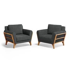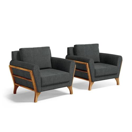 Kit 2 Poltronas Sabrina De Madeira Maciça Com Almofada Linho Chumbo 406 - Poltronas Para Sala De Estar E Amamentação