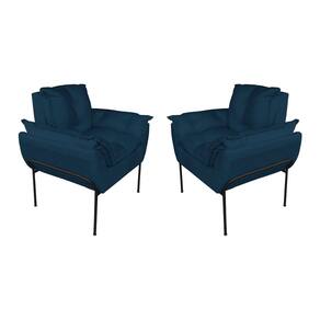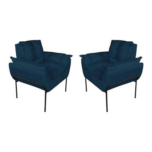 Kit 2 Poltronas Sala Base Preta Suede Azul Marinho - Vallisa Decor
