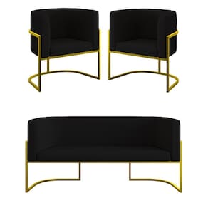 Kit 2 Poltronas + Sofá 2 Lugares Para Recepção Gold Veludo Cor:preto Preto