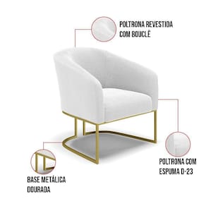 Kit 2 Poltronas Stella Bouclê Base Metálica Industrial Dourado - D'rossi Cor Off White