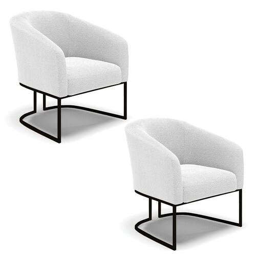 Kit 2 Poltronas Stella Bouclê Off White Base Metálica Industrial Preto - D`rossi - Blush