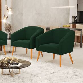 Kit 2 Poltronas Stella Bouclê Pés Palito Castanho - D`Rossi - Verde Musgo