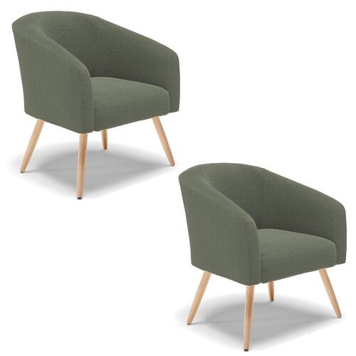 Kit 2 Poltronas Stella Bouclê Pés Palito Natural - D`Rossi - Verde Cinza