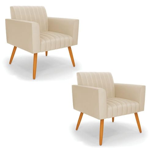 Quer uma decoração única e sofisticada? A Poltrona Viena é ideal para quem está em busca de um móvel versátil e diferenciado. Esse tipo de peça é ideal para ambientes modernos e descontraídos. Vem com uma ideia totalmente diferente, devido sua curva e forma suave, os detalhes gomados do tecido são tendências de decoração atuais. Uma dica legal de complemento é escolher almofadas que combinem com a poltrona. Sua estrutura é confeccionada em madeira de eucalipto proveniente de reflorestamento, o estofamento do assento é composto de espuma prorelax D-28 no encosto, e é revestido em Corino um tecido aconchegante, resistente e extremamente luxuoso. Sua sustentação é dada pelos tradicionais Pés Palito Castanho, suportando em média até 115 Kg. Crie um lindo efeito visual, em qualquer lugar da sua casa ou escritório! Garanta já seu Kit 2 Poltronas Viena.
